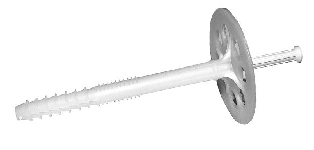 Hmoždinka s plastovým ( polyamid ) zatloukacím trnem pro povrchovou montáž. Univerzální použití pro všechny podklady - beton, lícové betonové dílce, plné cihly, vápenopískovcové tvárnice, tvárnice z lehčeného betonu, duté cihly, vápenopískovcové duté tvárnice, dutinové bloky z lehčeného betonu, mezerovitý lehčený beton, porobeton. Průměr dříku hmoždinky 10 mm, průměr talířku 62 mm, kotevní hloubka min. 40 mm.Balení 250 ks.
