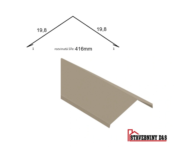 Hřebenáč RŠ 416 mm slouží k zakrytí a ochraně hřebene střechy, tedy nejvyššího bodu, kde se setkávají dvě střešní roviny. Díky šířce rozvinu 416 mm poskytuje větší přesah a lepší krytí, a tím zvyšuje ochranu před zatékáním vody a vnikáním sněhu či nečistot.