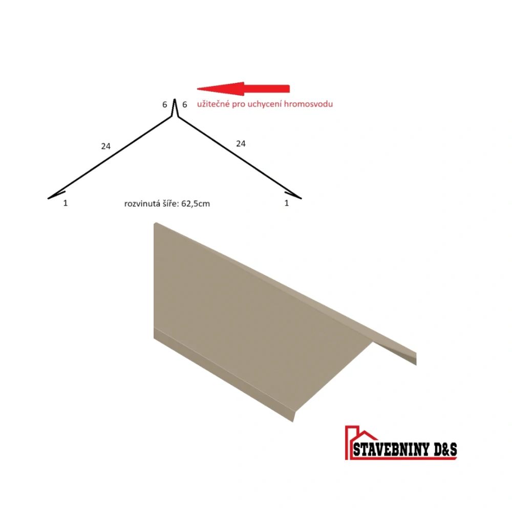 Hřeben RŠ 62,5cm s koněm 6 cm – připravený pro bezpečné uchycení hromosvodu celý popis