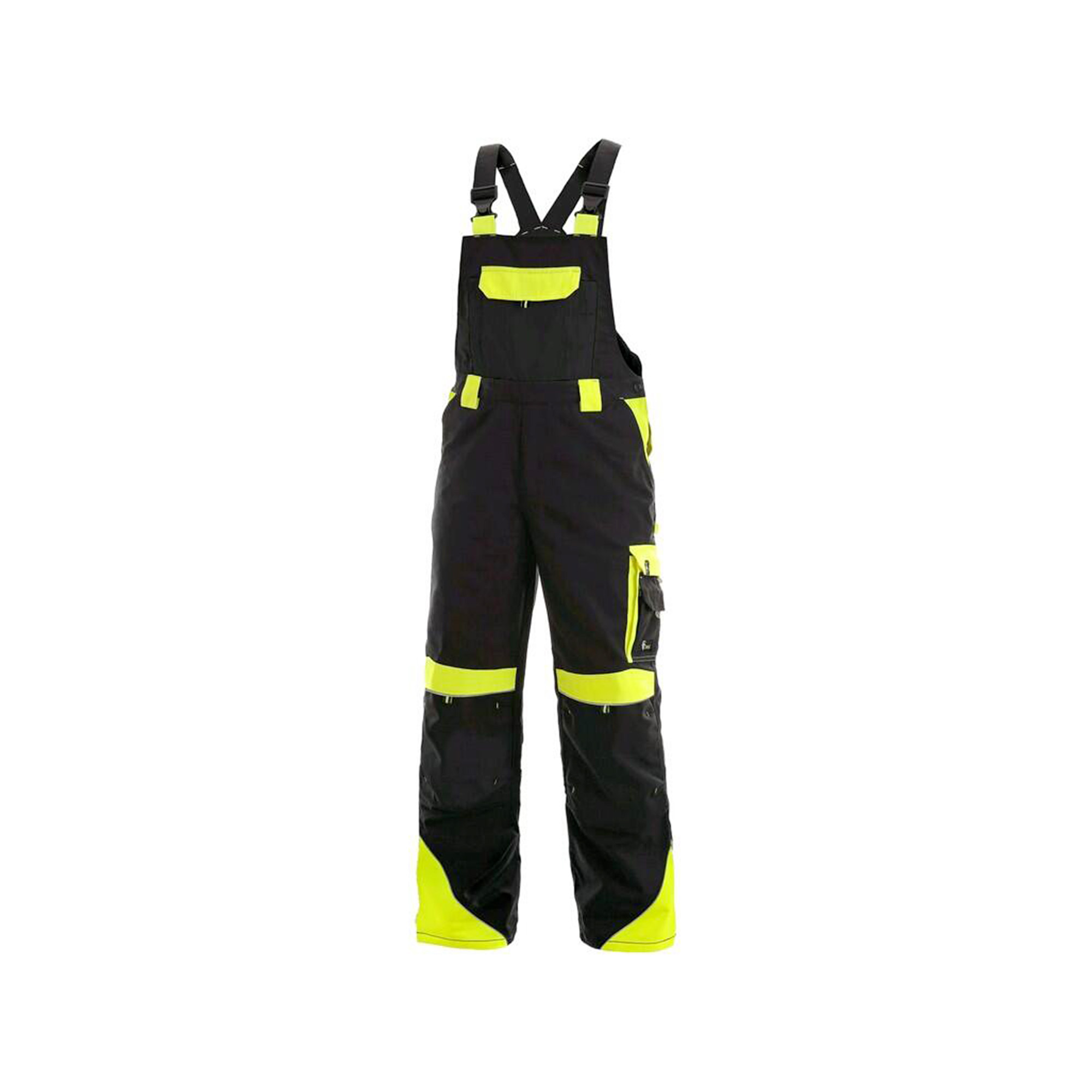 - velikosti: 46,50,54,58,62 - materiál: kanvas 65% polyester 35% bavlna - gramáž: 270g/m2 - podšívka: flanel 100%bavlna - zateplená flanelem - s náprsenkou - náprsní kapsa s klopou - pas s poutky na opasek, vzadu do gumy - přední klínové kapsy - multifunkční kapsy na obou stranách - kolena zesílena 600D polyesterem s možností - vložení kolenních výstuh - dvě zadní kapsy s klopami - šle s gumou vzadu - reflexní doplňky